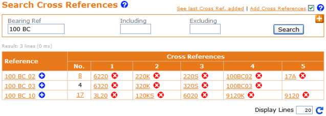 The Cross References database is a collective work of Bearingstocks' users who provide daily new cross references between bearings.