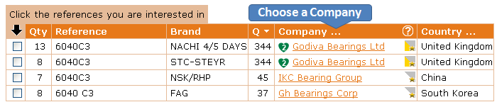 In your search results you can click on "..." beside Company to choose your Favorites Companies. The bearings of these Favorites Companies will appear first in your searches results and they will be flagged with a green heart